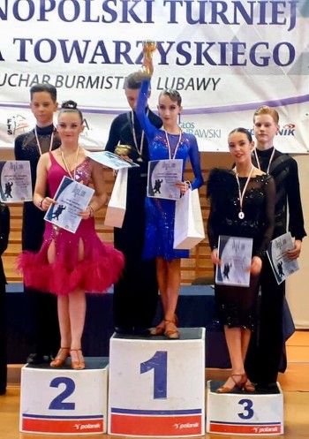 Jantarowcy zdobyli 4 złote medale, 6 srebrnych i 6 brązowych medali. Złoto wytańczyli: Marceli Józefowicz i Patrycja Jankowska (2 pierwsze miejsca), Michała Dregera i Kingę Sokalską oraz Paweł Skwira i Natalia Łysko. 6 srebrnych medali należy do Marcelego Żmijewskiego i Michaliny Ciechorskiej, Błażeja Jezierskiego i Malwiny Cybulskiej, Maksymiliana Kodrzyckiego i Julii Skwira oraz Nikodema Stańczewskiego i Julii Fidut. Trzecie miejsca zajęli: KonradaŚliwa i Hanna Buczek, Mariusz Zamiara i Amelia Saryk, Olafa Krawczyk i Klaudia Ulkowska, Krysian Dolegała i Nikola Knyszyńska oraz Oleksii Protsenko i Julia Wieteska. Serdecznie gratulujemy parom wspaniałego rozpoczęcia roku.