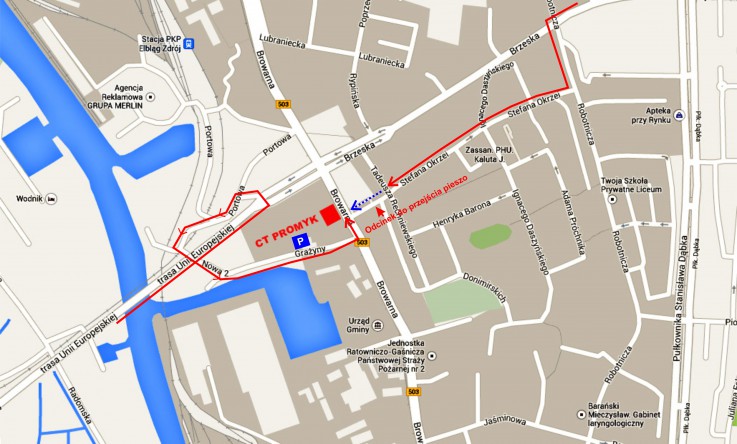 W związku z trwającymi pracami remontowymi przy ulicy Browarnej zamieszczamy mapkę dojazdu do Centrum Tańca Promyk. Dojazd do naszej siedziby jest od