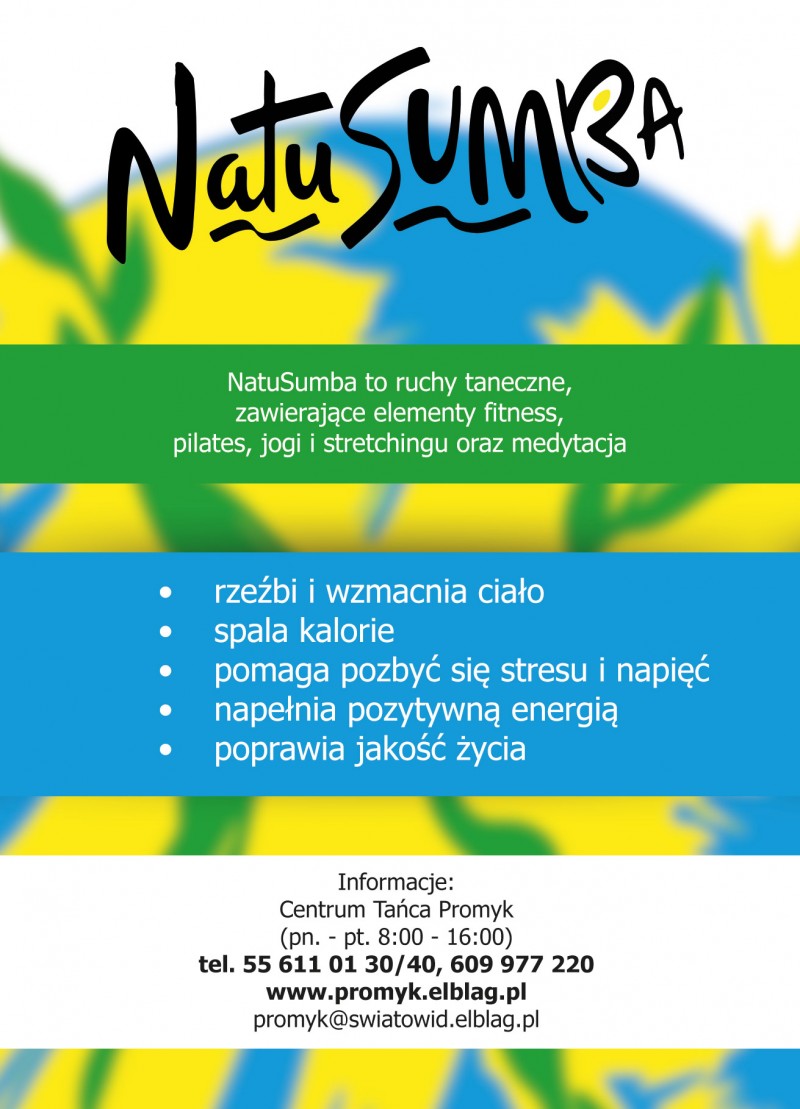 NatuSumba to taniec, fitness, pilates, joga i medytacja w jednym. To nowa forma aktywności wymyślona we Włoszech. Już od września będzie można skorzystać z zajęć NatuSumby w Centrum Tańca Promyk. Każdy, niezależnie od wieku może zapisać się na te zajęcia.