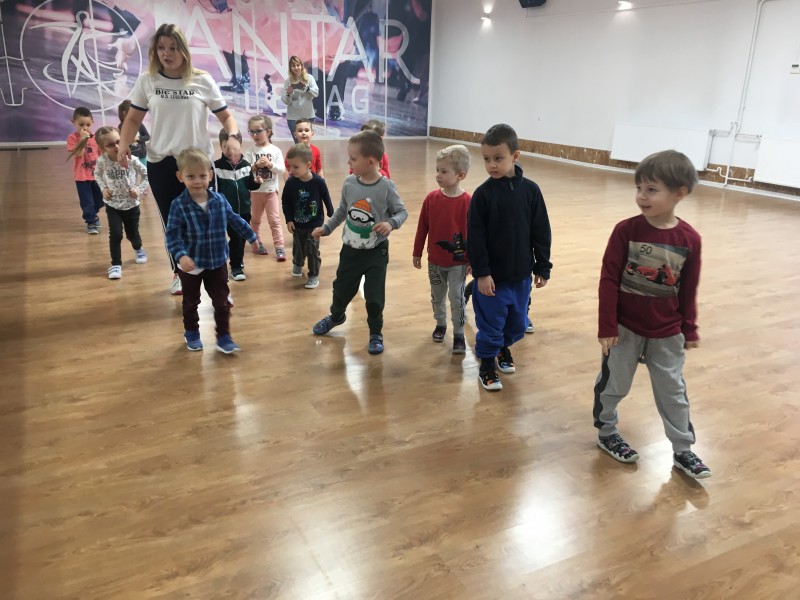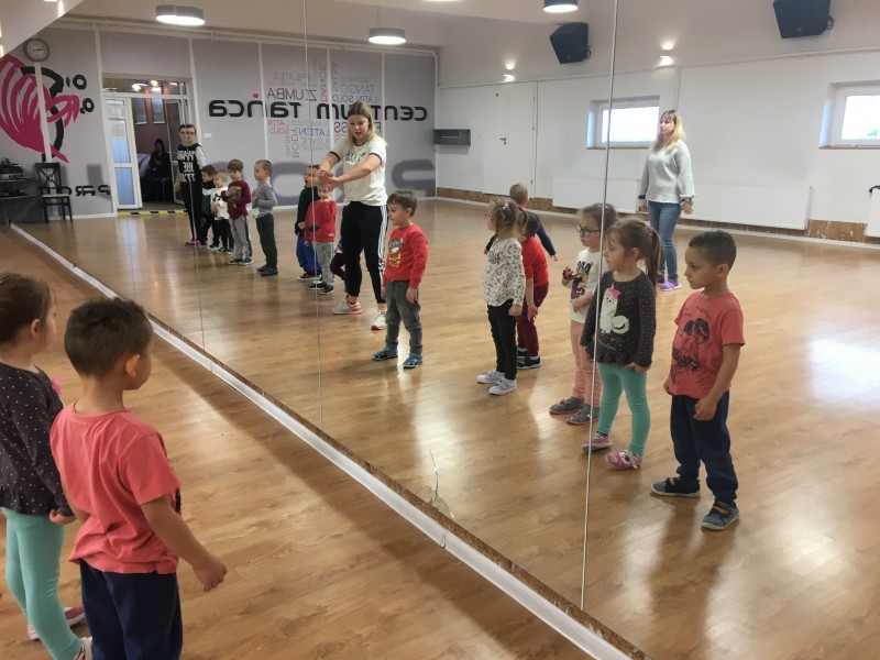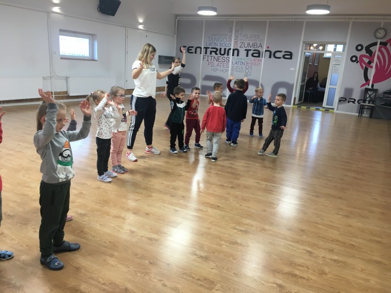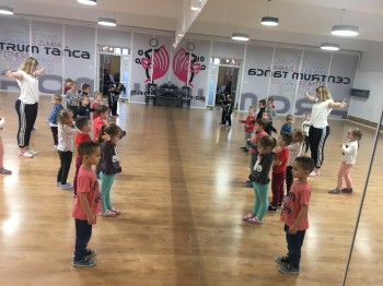 Tydzień w Promyku rozpoczął się wesołymi harcami dzieci z Przedszkola Jedyneczka. Zajęcia przy energetycznej muzyce poprowadziła nasza instruktorka Justyna Michalak. KANGURKI - bo tak nazywa się grupa tych 4 i 5 latków świetnie bawiły się m.in. przy piosence "Baby Shark". Maluchy zostały oprowadzone po Promyku oraz obejrzały film "Dlaczego warto tańczyć". W trakcie naszego spotkania dzieci mogły zobaczyć medale i puchary oraz stroje Formacji Tanecznych , którymi były zachwycone. Na pożegnanie dostały mały upominek.