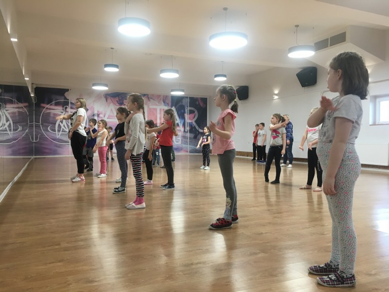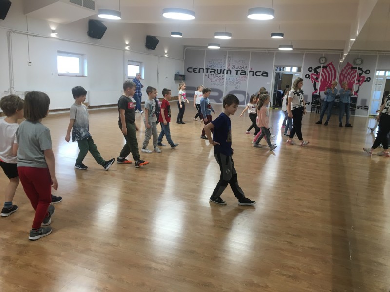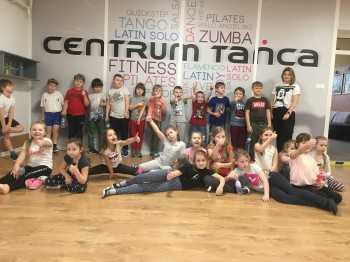 Dziś ponownie odwiedziły nas dzieci ze Szkoły Podstawowej Nr 21, tym razem byli to drugoklasiści. Małolaty na początek obejrzały film na temat różnych form tańca hip-hopowego, a zaraz potem wskoczyły na parkiet pod okiem naszej instruktorki hip-hopu Justyny Michalak. Dzieci świetnie się bawiły podczas nauki różnych kroków i gestów. Pod koniec miała miejsce mała "bitwa taneczna" - dziewczyny kontra chłopcy - pokazująca czego dzieci nauczyły się w trakcie tych zajęć. Nasi goście mieli również okazję obejrzeć puchary i medale oraz stroje formacji tanecznej. Żegnając się otrzymali drobną niespodziankę.