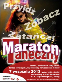Maraton odbędzie się już w najbliższą sobotę, 7 września w głównym holu CSE Światowid. Początek o godzinie 16.00, a koniec około godz. 20.45. Przez pierwsze trzy godziny zostaną pokazane propozycje dla dzieci i młodzieży. Będzie taniec nowoczesny, ludowy, współczesny oraz taniec towarzyski. – Ponadto dzieci będą zachęcane do udziału w warsztatach, aby same mogły zatańczyć i zobaczyć co najbardziej im się podoba – mówią organizatorzy.