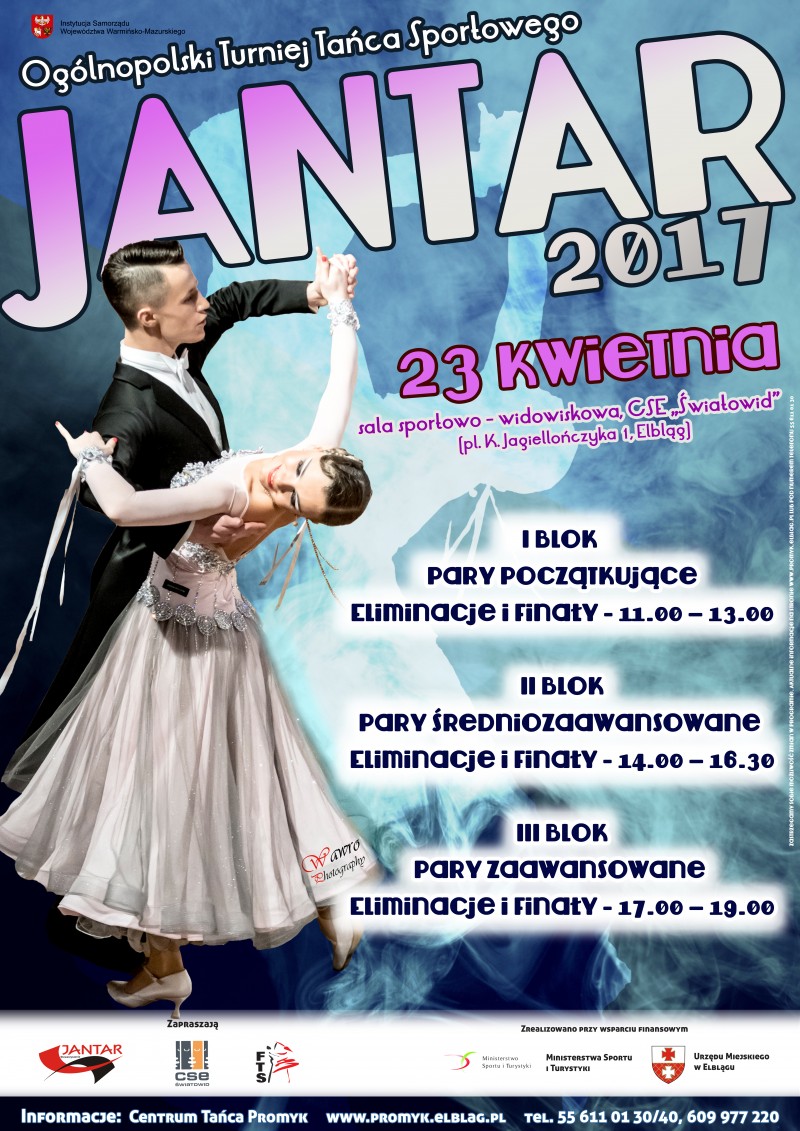 Ogólnopolski Turniej Tańca „Jantar” został dofinansowany ze środków Urzędu Miejskiego w Elblągu oraz ze środków Ministerstwa Sportu I Turystyki.